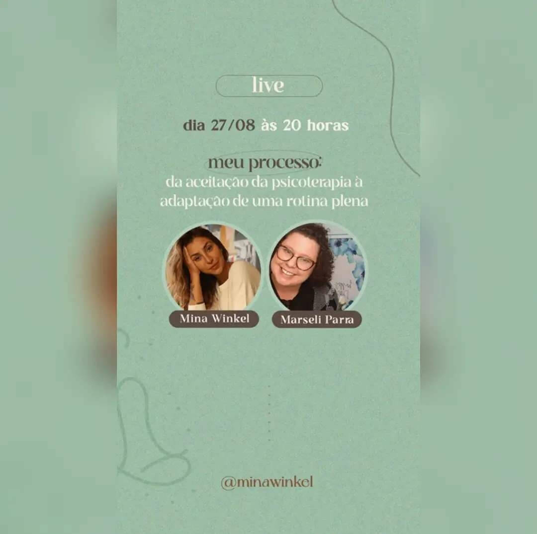 Live realizada no dia 27/08/2021 com a Psicóloga Marseli Parra e a Influencer Mina Winkel (@minawinkel).